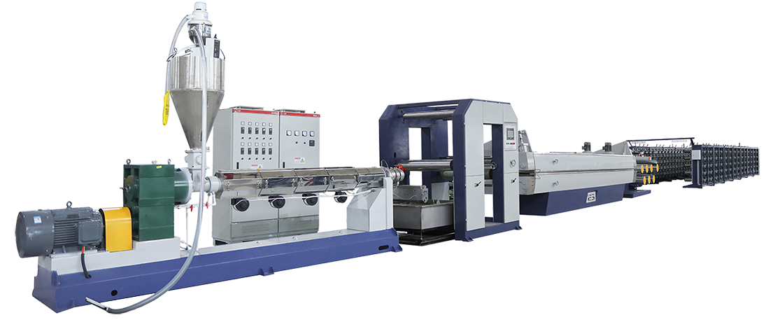 設(shè)備適用于生產(chǎn)聚丙烯(PP)新料,聚丙烯(PP)回料,以及生產(chǎn)新料與回料混合料。可用于草坪地毯的紗線,PP繩子等等。